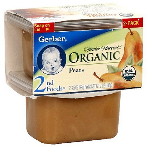 Gerber 2nd Foods Tender Harvest Organic Pears, 2-Count, 3.5-Ounce Tubs (Pack of 16)
