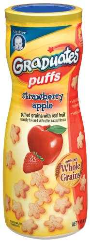 Gerber Finger Foods Puffs, Strawberry & Apple Fruit Puffs, 1.48-Ounce Canisters (Pack of 12)